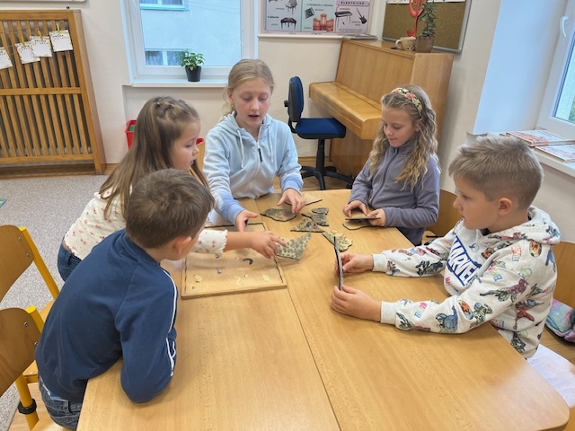 V druhé části programu se žáci věnovali vývojovému cyklu roháče. Seřazovali o něm komiks, skládali dřevěné puzzle, povídali si o jeho stavbě těla, vývojových stádiích a délce jeho života. Program byl zakončen dramatizací dvou samečků roháče a jedné samičky.