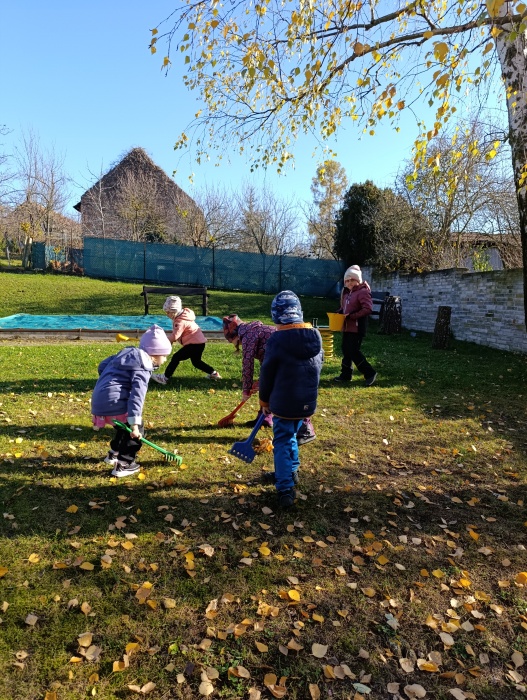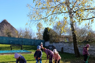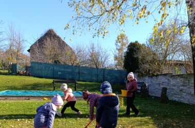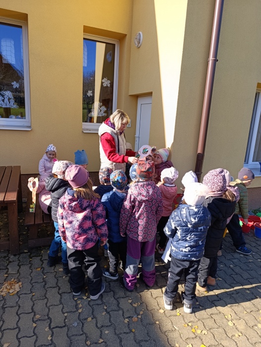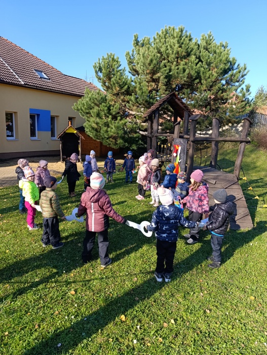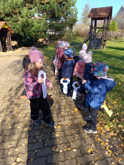 Podzim se blíží ke konci a tak nás čekala na zahradě již tradičně Podzimní víla. Děti jí pomohly připravit zahradu na zimu hrabáním listí, sbíráním větviček a výrobou kouzelných klíčů, kterými jsme zahradu až do jara uzamkli.