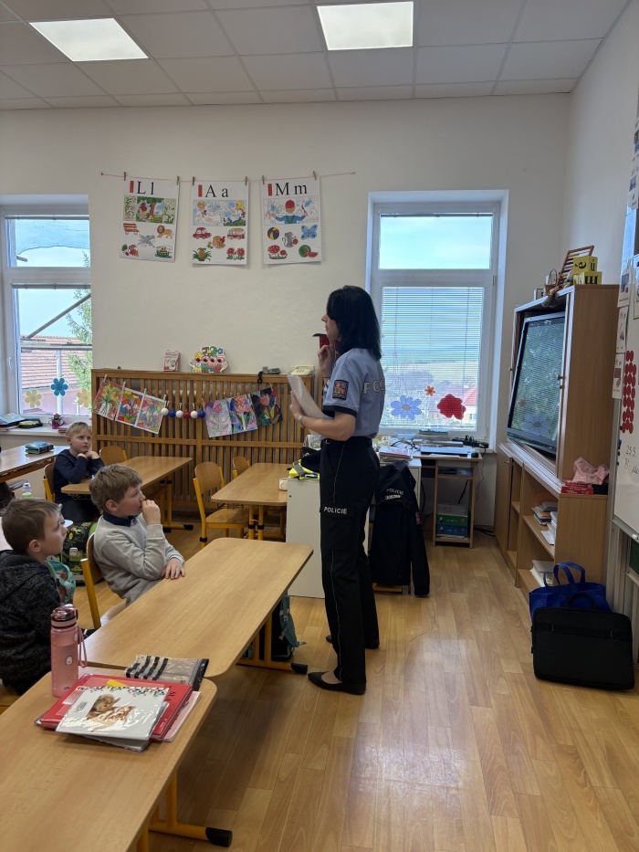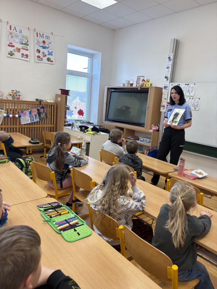 Dne 23. 3. jsme ve škole měli výukový program od Policie ČR s paní Šabatovou. Žáci si během něj zopakovali důležité telefonní číslo na policii, mohli si vyzkoušet policejní uniformu, pouta i další vybavení. Povídali si také o rozdílech mezi státní a městskou policií. V závěru programu se zaměřili na bezpečnost – připomněli si zásady bezpečné jízdy na kole a správné přecházení vozovky po přechodu.