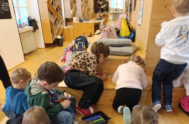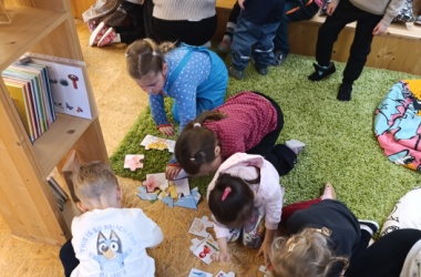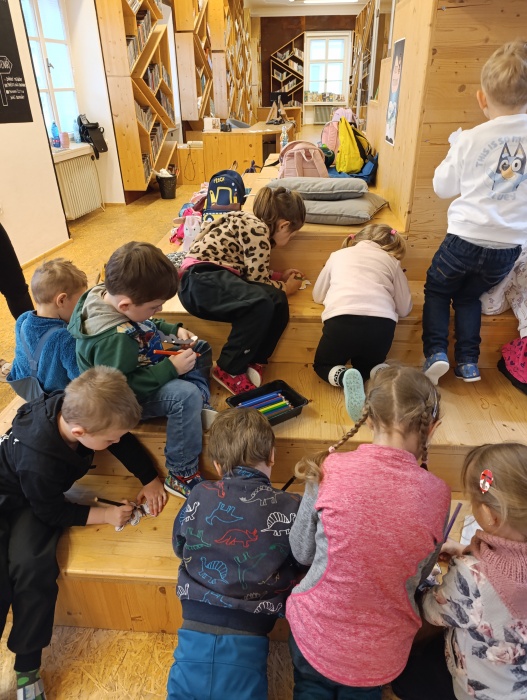 Četba pohádky, skládání a hledání obrázků, a dokonce i výroba velikonočních zvířátek z papíru nás čekala v knihovně dětského oddělení v Uherském Brodě. Náš malý výlet nám nezkazilo ani deštivé počasí.