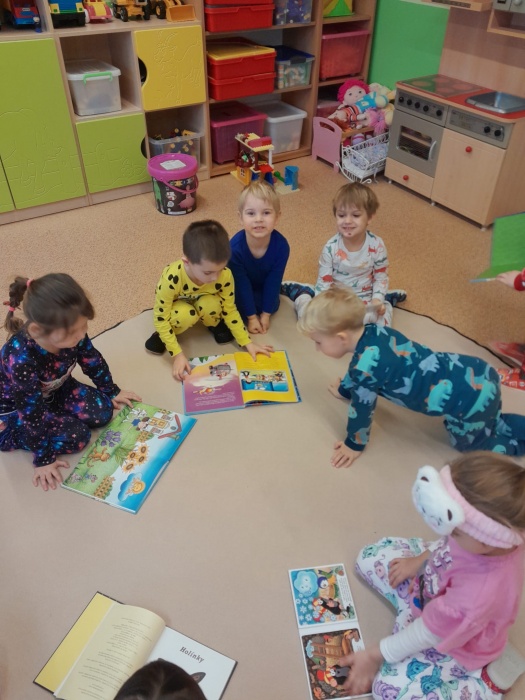 Celý den v pyžamku. To byla paráda. Užili jsme si spoustu legrace, prohlédli oblíbené knížky a udělali si i přehlídku našich plyšáků.