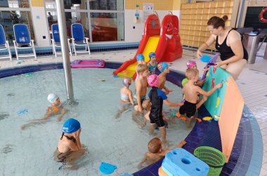 Letos netradičně, již v září, jsme se připojili ke školákům k výuce plavání. Formou her se seznamujeme s vodou a prostředím Aquaparku v Uherském Hradišti. Paní učitelka pro nás má připraveno spoustu básniček a říkanek, ale i soutěží a úkolů spojené s vodou a potápěním.