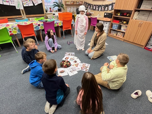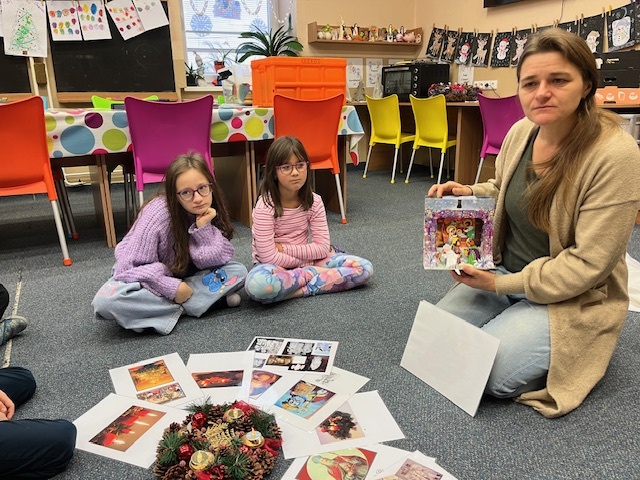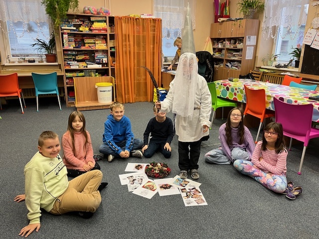 V úterý dne 2. 12. proběhl v naší škole výukový program Advent pod vedením lektorky Zuzany Čevelové z Přírodovědného centra TRNKA. Žáci se seznámili a historií a tradicemi adventního období, zahráli si historické postavy a na závěr si vyrobili vánoční přání.