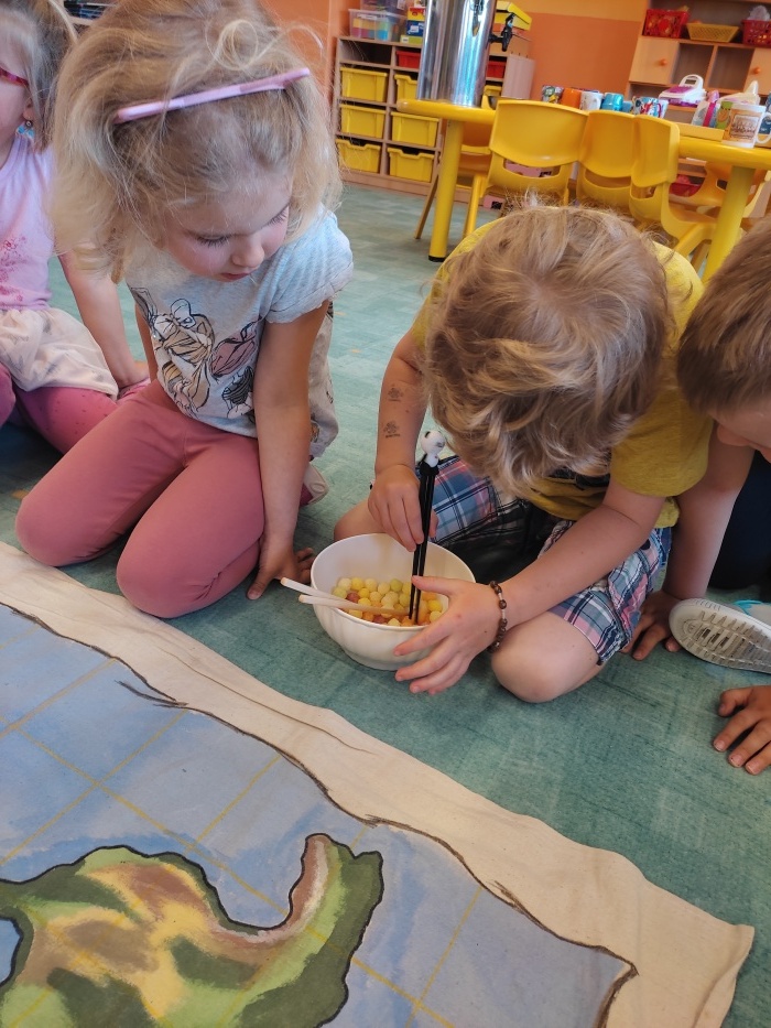 V rámci celoročního projektu jsme poznávali celý svět. Poslední zastávka na naší cestě byla v Asii. Děti byly nadšené z prožitkově poučného programu, kde se seznámily s prostředím a kulturou Asie, živočichy, rostlinami, zajímavostmi kontinentu. Měly možnost zkusit jíst hůlkami, ochutnaly speciality asijské kuchyně, děvčata měla možnost si vyzkoušet japonský oděv či obuv. Na závěr jsme se naučili kreslit/psát tuší a štětcem pár znaků písma.