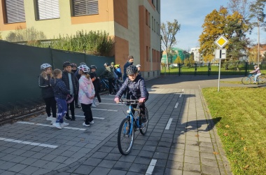 Poslední říjnový pátek žáci 4. a 5. ročníku absolvovali dopravní výchovu v Uherském Hradišti. Na zkoušky o Průkaz cyklisty se vydáme 1. června 2026.