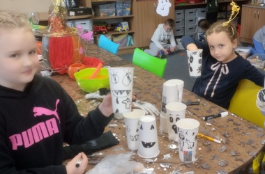 Protože jsme nestihli tento den všechen program, pokračovali jsme v zábavných hrách i ve středu. Uvařili jsme si také strašidelné těstoviny, zdobili kelímky a zástěrky halloweenskými motivy.