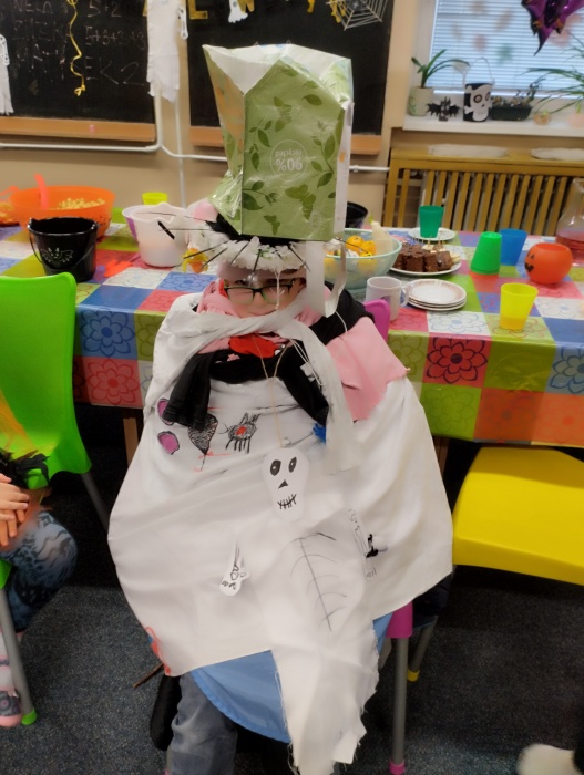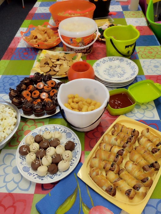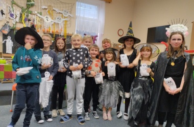 V úterý 7. 11. 2023 se uskutečnilo již tradiční Halloweenské odpoledne ve školní družině. Jelikož jsme se na něj pilně připravovali, byla škola i družina krásně strašidelně vyzdobená. Zářil nám tu vlastnoručně vyrobený strašidelný hrad, svítily nám duchové z keramiky, vydlabané dýně atd. Děti jako vždy měly krásné a nápadité masky. Připravili jsme si dobroty na strašidelný raut a jako vždy se na něm podílely maminky s úžasnými strašidelnými specialitami.