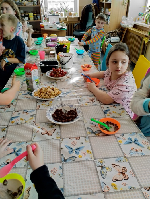V úterý 7. 3. 2023 jsme si oblekli nejoblíbenější pyžamko a sešli se na ,,Pyžamové party“. Zábava byla trošku jiná než na jiných party, ale odpoledne jsme si užili. Poslechli jsme si pěknou pohádku, zazpívali uspávanky….. Každý přestavil svůj noční model i svou hračku na usínání a polštářek. Všechny modely byly samozřejmě ohodnoceny. Děti si také užily bohatý rautík s kakaem, různými lupínky, kuličkami, sušeným ovocem atd. Zahráli jsme si také zajímavé soutěže. Usnout se nám opravdu nepodařilo!