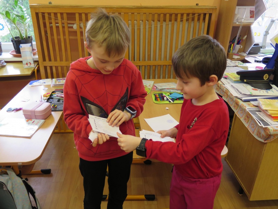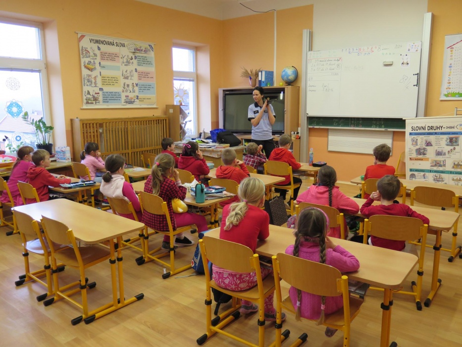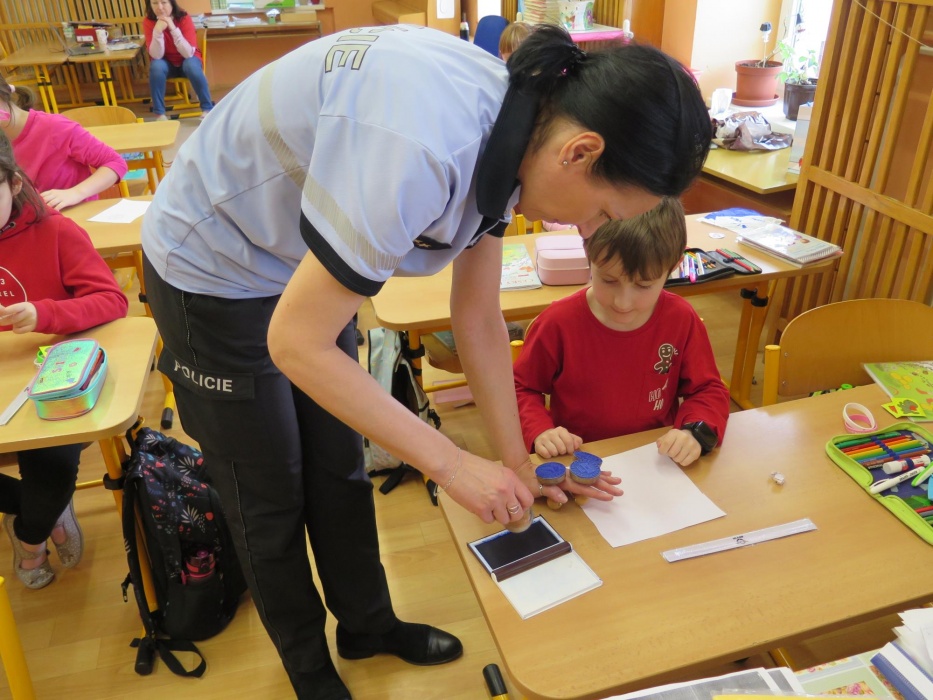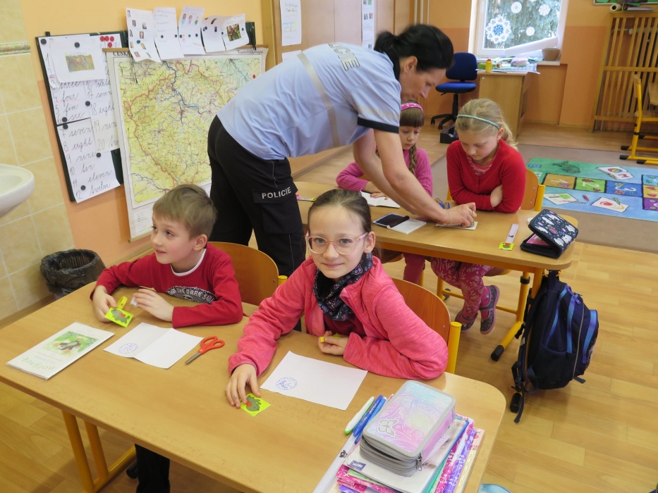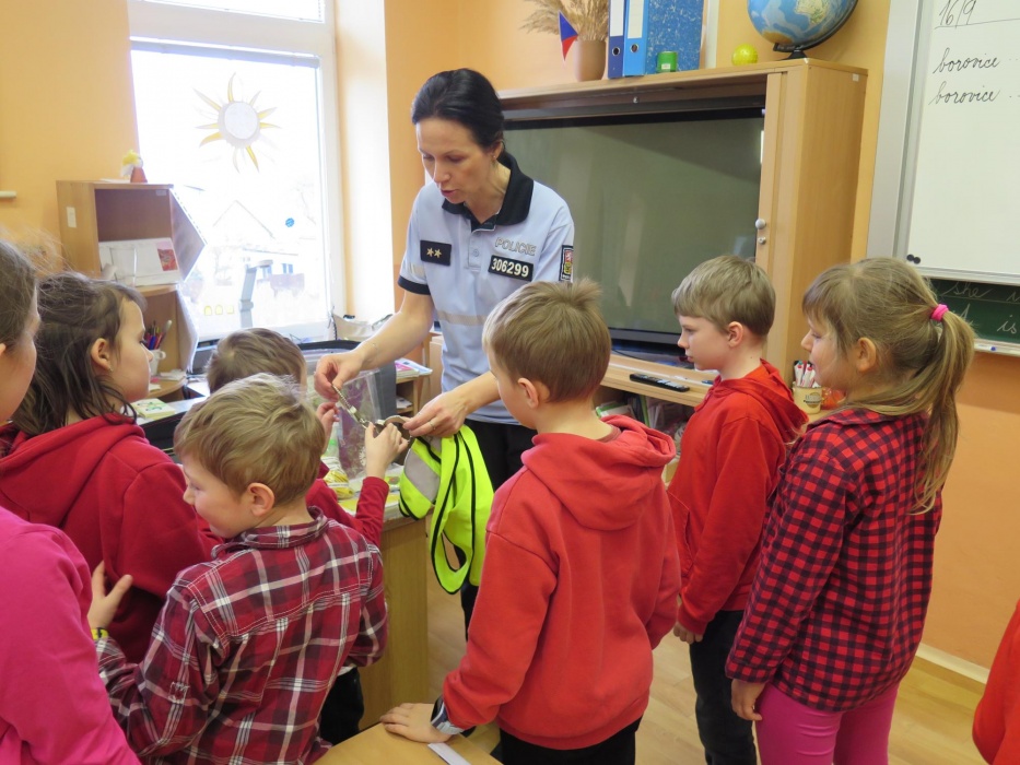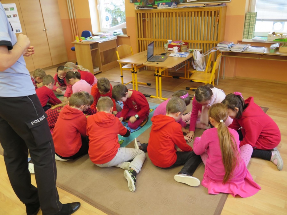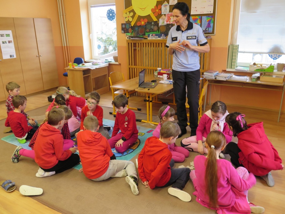 Ve čtvrtek 8. 2. 2024 jsme pozvali mezi nás do školy por. Bc. Milenu Šabatovou, která dětem připomněla správné chování nejen v roli chodce a cyklisty, ale také dětem vysvětlovala, jak se bezpečně chovat na internetu, jestli máme cizím lidem sdělovat pravdivé informace o sobě, zda můžeme s cizími lidmi někam jít či odjet. Děti soutěžily, skládaly puzzle a za to, že byly šikovné, dostaly drobné dárečky.