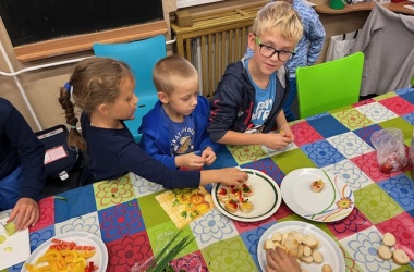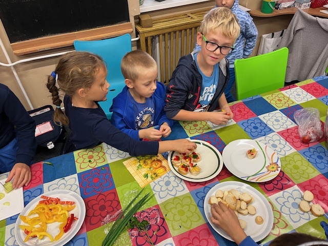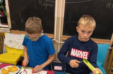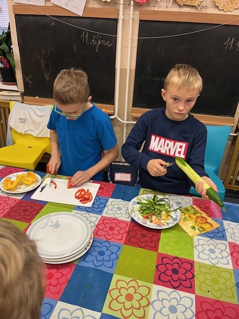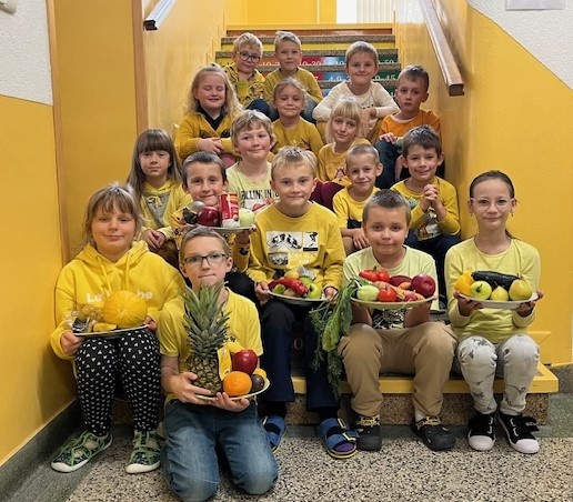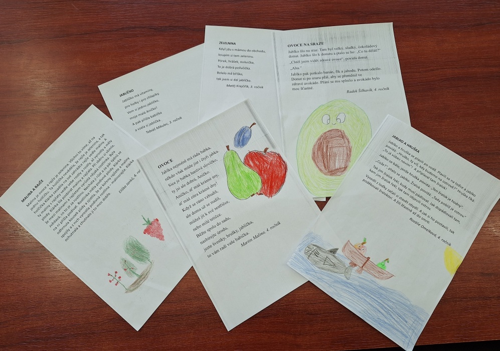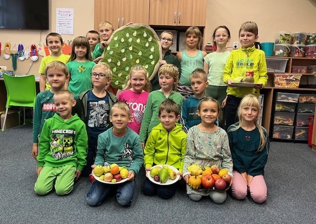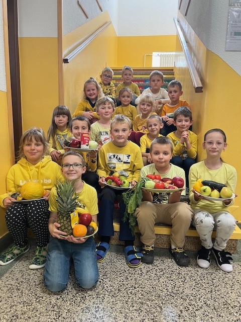 Po krátkém ranním cvičení jsme dnes sestavili zdravý jídelníček, zabývali jsme se kamarádskými vztahy, založili kreativní deníky a starší žáci v rámci literatury zvládli i vlastní tvorbu (básničky, vyprávění) na téma Ovoce a zelenina.