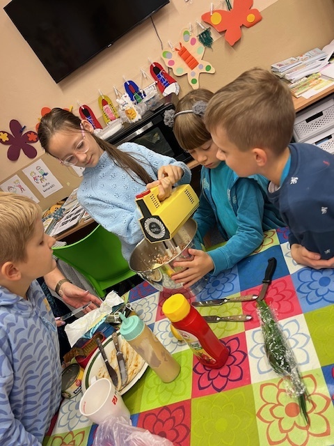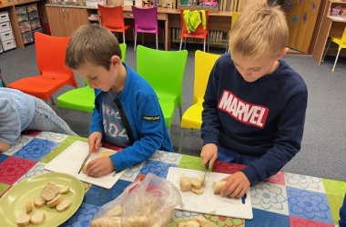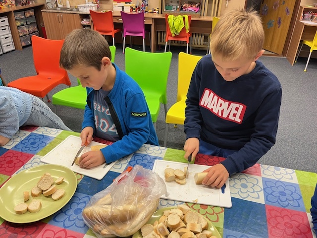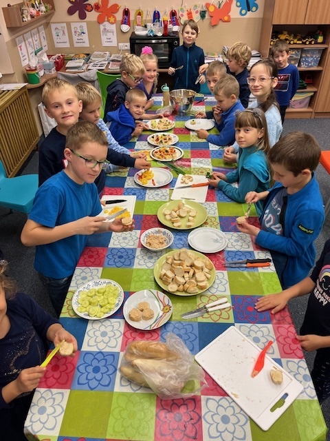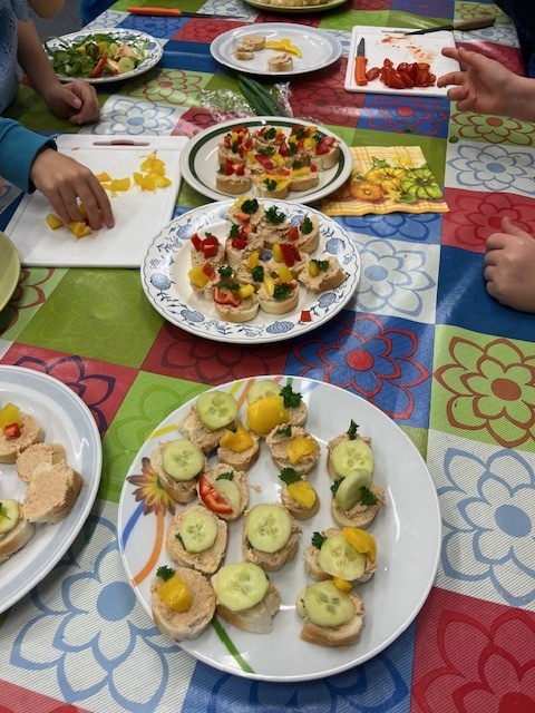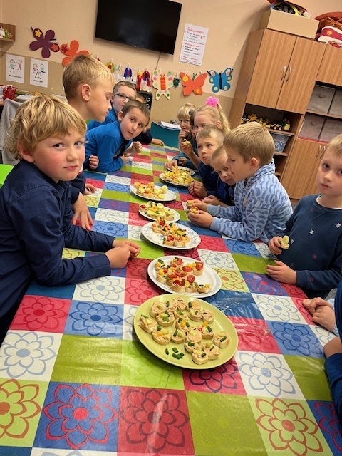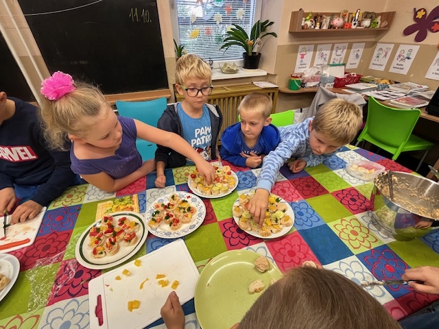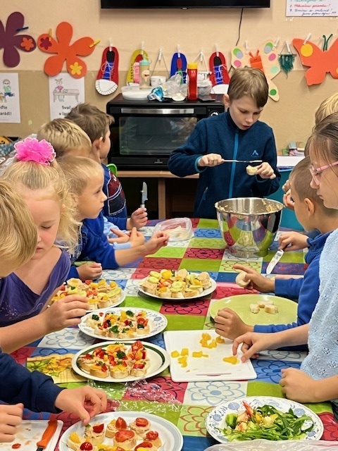 Modrým pátkem jsme ukončili náš Barevný týden zdraví. Dnes jsme si připravili jednohubky s rybí pomazánkou. Byla moc dobrá.